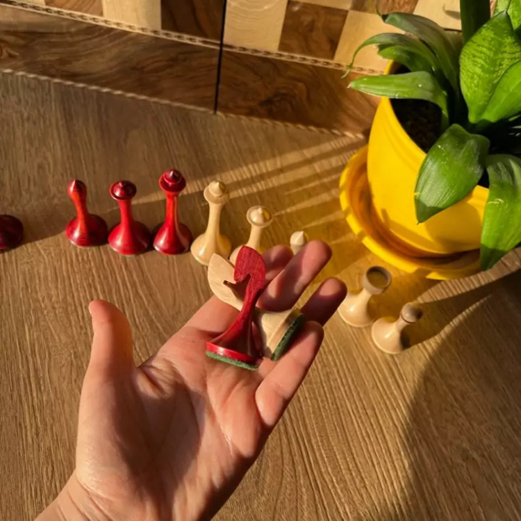 مهره شطرنج چوبی کلاسیک رنگی بدون وزنه